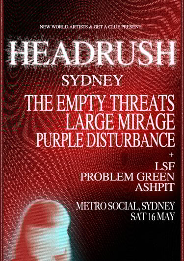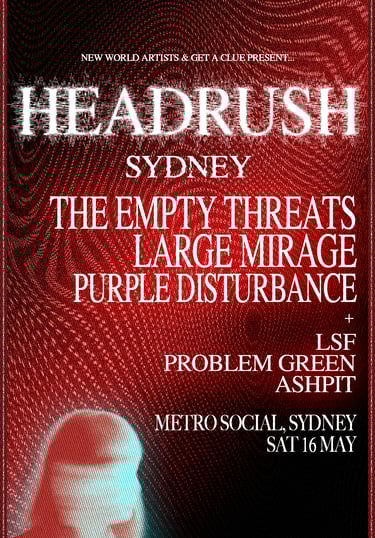 Despite their relative youth, LARGE MIRAGE have logged serious miles. They’ve sold out headline shows in Sydney and Melbourne and shared bills with artists such as The Screaming Jets, Amyl & The Sniffers, and the Australian Rock Collective. Their versatility has seen them move seamlessly from intimate venues to major festival stages, appearing at events as varied as Woodford Folk Festival, Lost Paradise, Party In The Paddock, and King Street Summer Crawl.