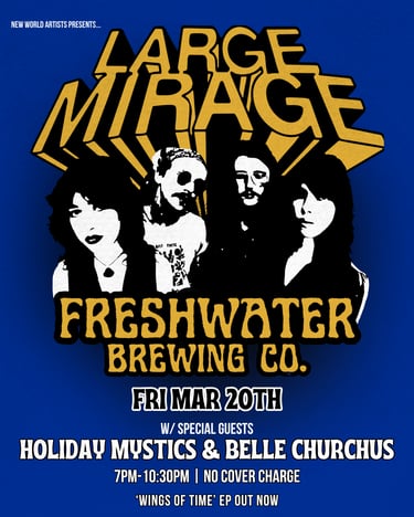 fri, mar 20, 2026 - freshwater brewing co w/ holiday mystics + belle churchus