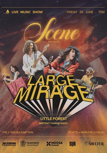 Despite their relative youth, LARGE MIRAGE have logged serious miles. They’ve sold out headline shows in Sydney and Melbourne and shared bills with artists such as The Screaming Jets, Amyl & The Sniffers, and the Australian Rock Collective. Their versatility has seen them move seamlessly from intimate venues to major festival stages, appearing at events as varied as Woodford Folk Festival, Lost Paradise, Party In The Paddock, and King Street Summer Crawl.